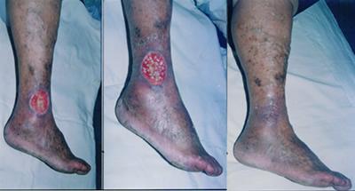 下肢发生溃疡,疼痛明显,分为早晚期: